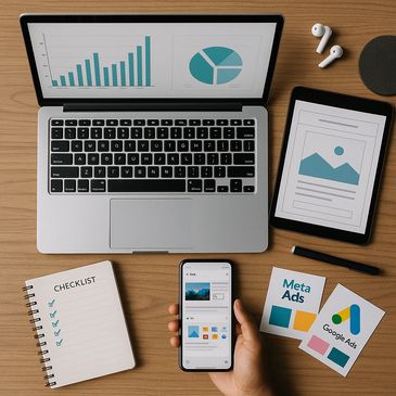 Atuamos de ponta a ponta: Gestão de Tráfego (Meta & Google), Social Media e Conteúdo, Landing Pages integradas ao RD Station, configuração de funil, UTMs, pixels e otimização contínua.